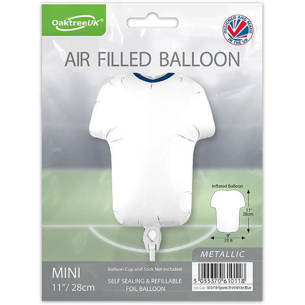 Oaktree White And Blue Metallic Sports Shirt Wholesale Air Fill Mini Shape Foil Balloon.