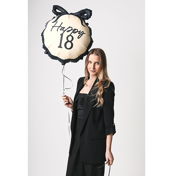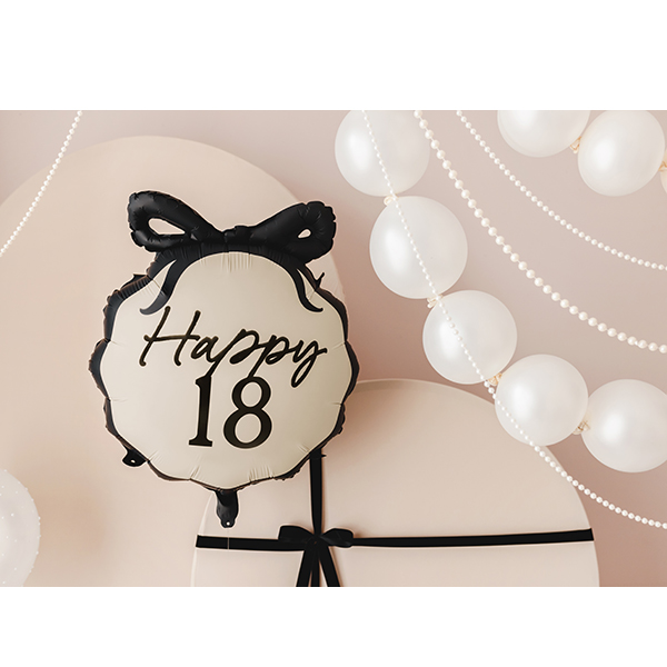 PartyDeco Black And Cream Happy 18th Birthday Pill Bow Wholesale Shape Foil Balloon.