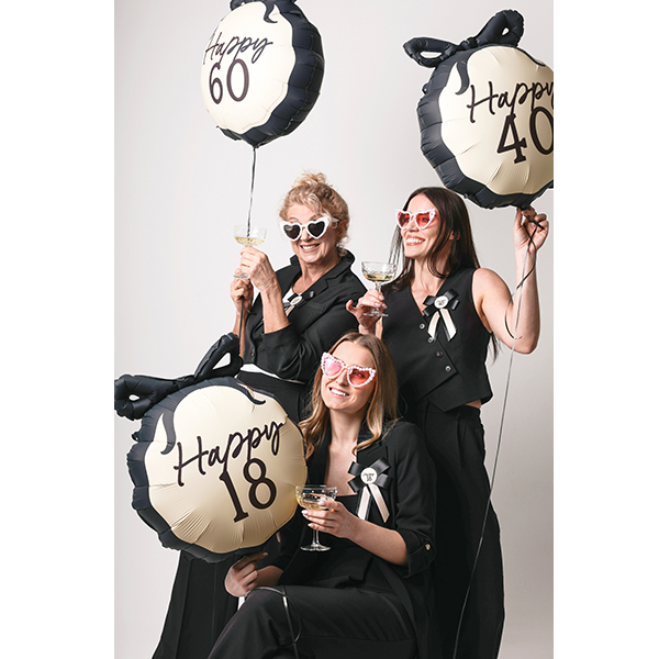 PartyDeco Black And Cream Happy 40th Birthday Pill Bow Wholesale Shape Foil Balloon.