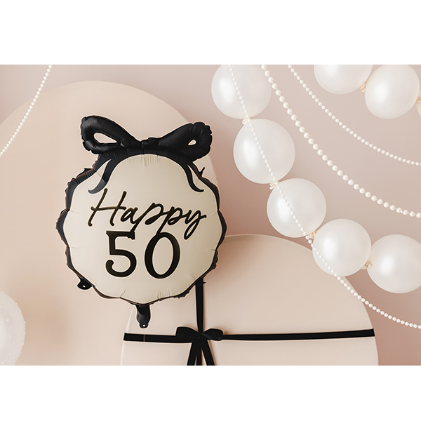 PartyDeco Black And Cream Happy 50th Birthday Pill Bow Wholesale Shape Foil Balloon.