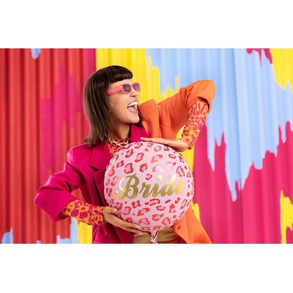 PartyDeco Pink And Red Leopard Print With Gold Inscription BRIDE Wholesale Foil Balloon.