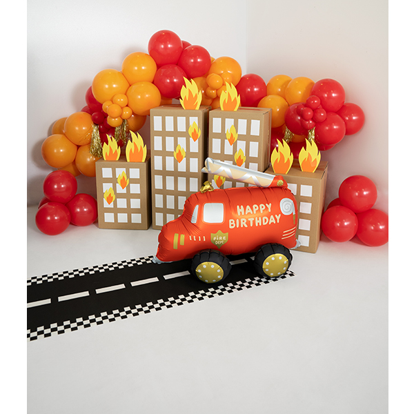 Partydeco Red, Gold And Black Fire Truck Standing foil balloon Wholesale Shape Foil Balloon.