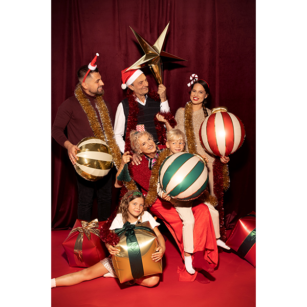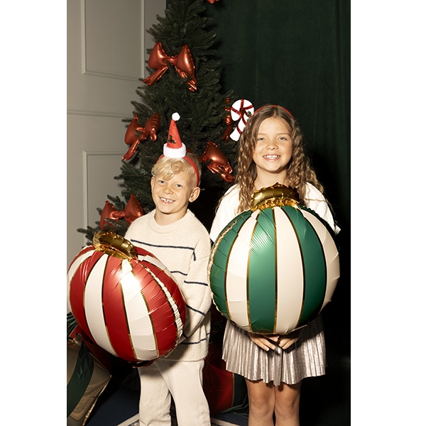 These Red, Gold And Green Striped PartyDeco Christmas Baubles Are The Perfect Addition For Your Christmas Themed Balloon Display.