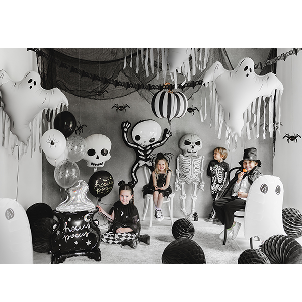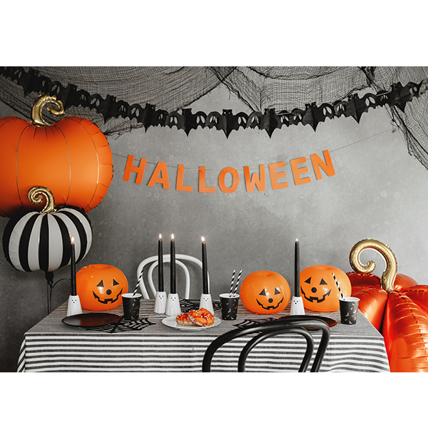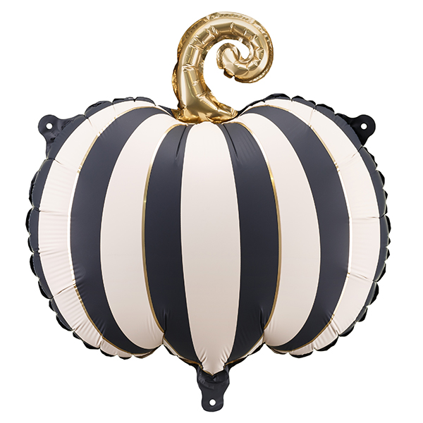 PartyDeco Foil balloon Pumpkin with cream and black stripes and a golden stem Wholesale Foil Balloon.
